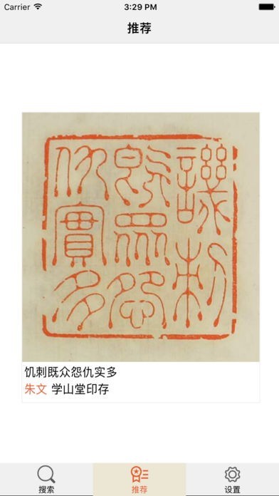 App Storeより引用このアプリは、篆刻ために開発された画像検索ツールであり、多くの篆刻写真を収集し、全体のアプリケーションは、書道、シールカット愛好家、およびテキスト学者のための単語検索を提供しています。
