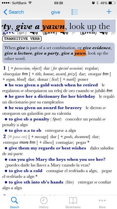 App Storeより引用コリンズスペイン語大辞典 第9版 2009年