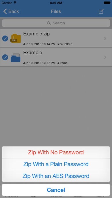 iPhoneやiPad上でZipファイルの作成や解凍が行なえるアプリ