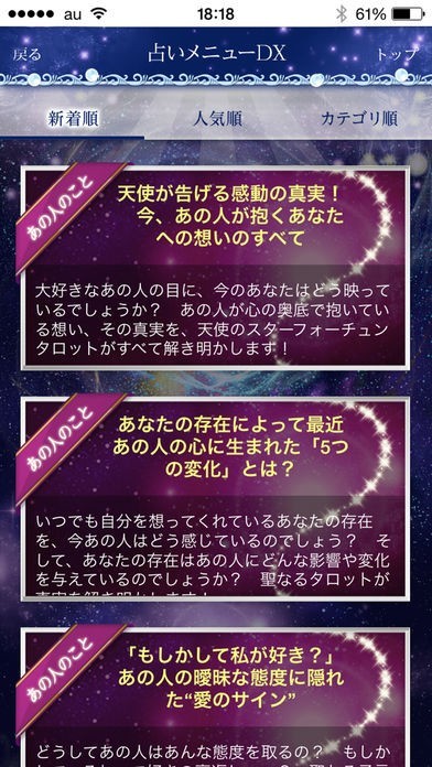 仕事がうまくいなない原因は何だろうか?などの仕事について占う機能が備わっています。占い結果を参考に行動することでうまくいかなかった仕事がうまくゆき、人生が華やかになります。