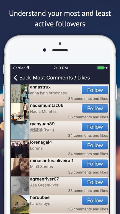インスタグラムを管理するためのアプリです。自分の投稿にもっとも反応してくれたのは誰かなど、フォロワーの状況がこまかくわかります。画面も見やすく、インスタ管理がぐっと楽になります。