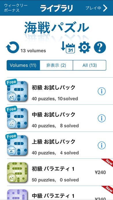 App Storeより引用海戦パズルは子供の頃から親しみのある海戦ゲームのロジックパズル版です。数学の知識は必要なく、ロジックだけをベースに子供から大人までエンドレスに楽しめる知的エンタテインメントです。