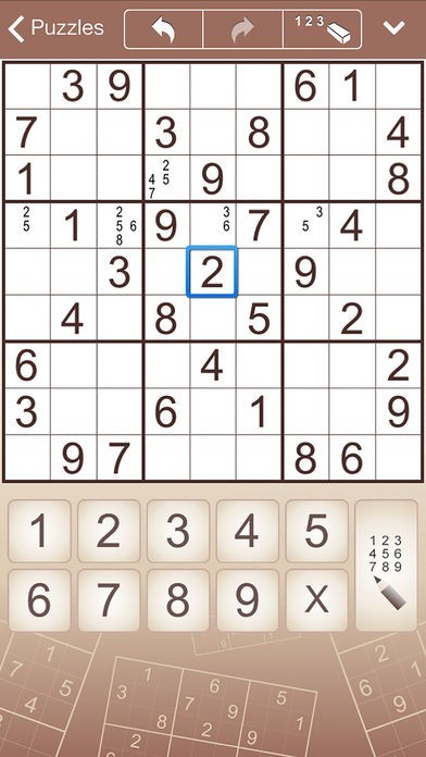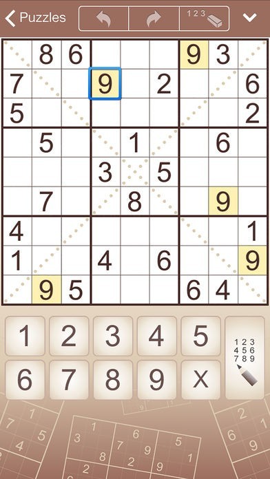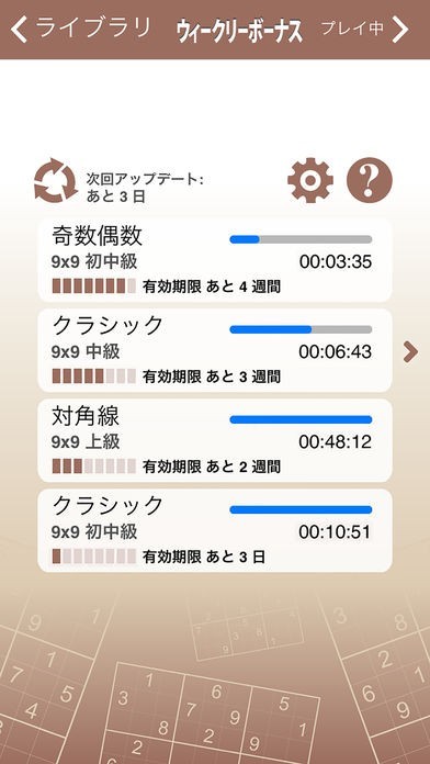 しっかりと考えながら問題に取り組みたいという方におススメです。画面は茶色と白を基調としているため、集中力を切らさずに当てはまる数字を考えていくことが可能となっています。