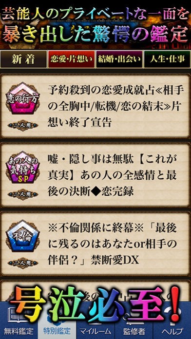 一度購入したメニューは、鑑定履歴以外からは再度課金が発生致しますのでご注意ください。