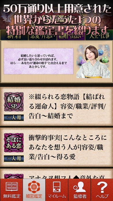 一度購入したメニューは、鑑定履歴以外からは再度課金が発生致しますのでご注意ください。