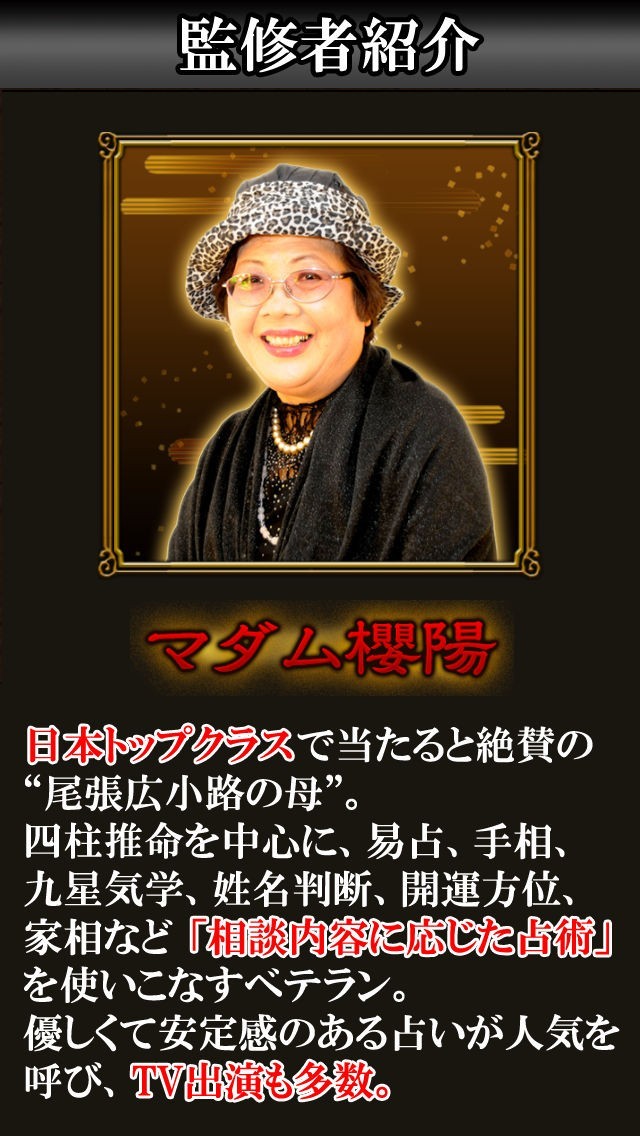 App Storeより引用日本トップクラスで当たると絶賛の“尾張広小路の母”マダム櫻陽。