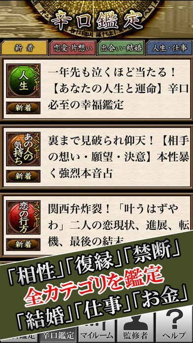 一度購入したメニューは、鑑定履歴以外からは再度課金が発生致しますのでご注意ください。