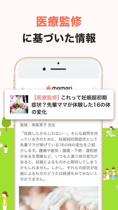 ママだけでなく、妊活中のプレママから使える情報アプリです。妊娠にまつわる事はもちろん、赤ちゃんについて、育児について何でも匿名で悩みを相談することができます。気になる記事は保存しておけば、後日まとめて読めます。妊活~出産にまつわる事は、なかなか他人に聞きづらいものですが、どんな些細な事も相談できるのが嬉しいです。毎日役立つニュースを配信してくれるので、子育て雑誌やウェブサイトを様々チェックしなくても欲しい情報が手に入ります。プレママからママ、子育て中のママまで長く利用できるアプリとなっています!