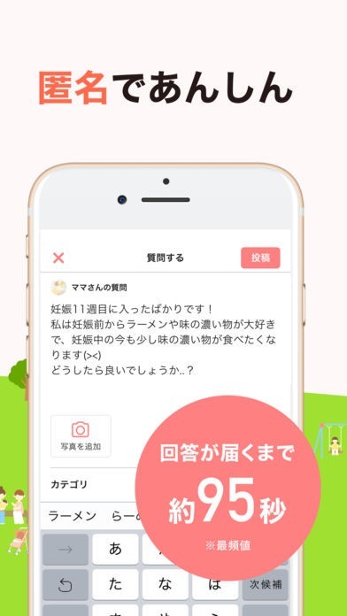 妊活~出産、育児まで何でも相談することができるアプリは、98.5%の回答率!悩みは即座に解消できます!!