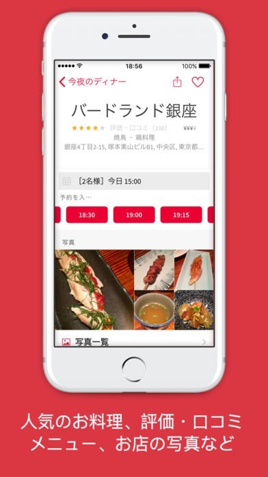 スマートフォンから世界中のレストラン43000店以上の中からエリアや料理の種類など自分の希望に合った条件のお店を検索して、予約をすることが出来るアプリとなっています。