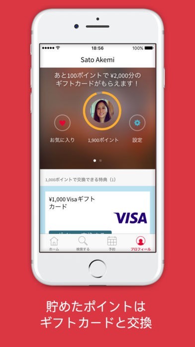 アプリで予約をしたレストランで食事を済ませるとポイントをもらうことが出来るようになっていて、貯めたポイントを使ってギフトカードと交換することも可能となっています。
