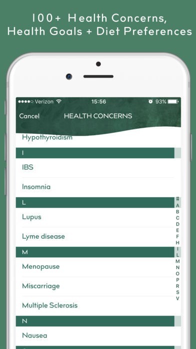 Feel free to contact us to request we add your health concern. We’re constantly expanding our database and we listen to our users to decide which health concerns to include next!