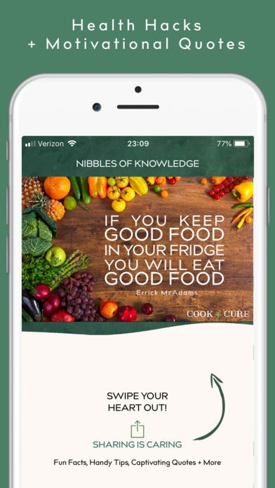 We’re all different. We each have our own unique set of health concerns, health goals, and dietary preferences. Cook + Cure is the first holistic health app that takes all of those factors into account to meet your particular needs. This is nutrition made easy and simple.