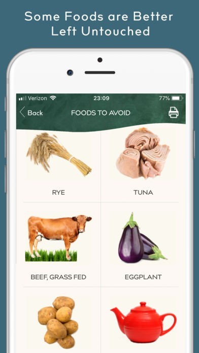 Export a custom infographic of the best + worst foods for their unique profile. Put it on your fridge or share information with friends and family even if they don’t have the app!
