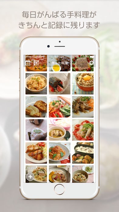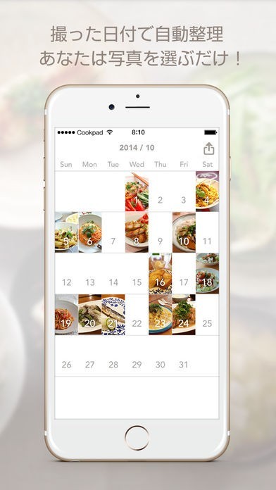 料理の写真をスマートフォンで撮影してカレンダー形式で表示することができるので作った料理がすぐわかる!
