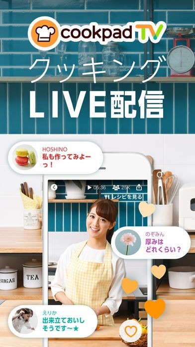 「cookpadTV -クッキングLIVEアプリ-」は、シェフや料理研究家のライブ配信を視聴できるアプリです。 「クッキングLIVE」機能では実際に料理する様子を配信してくれるため、具体的な手順を見ながら学べるのが嬉しいポイント。 コメント機能も用意されており、ライブ配信中に質問やリクエストもできるようになっています。