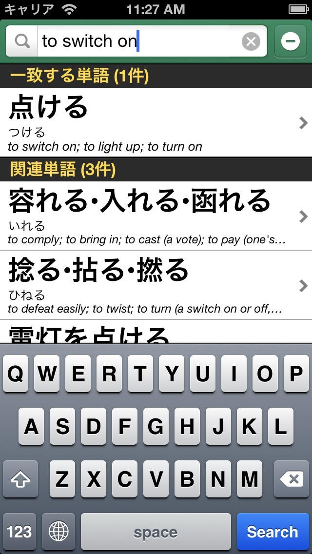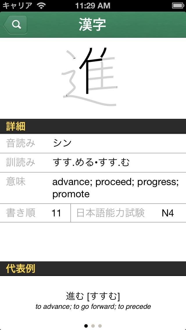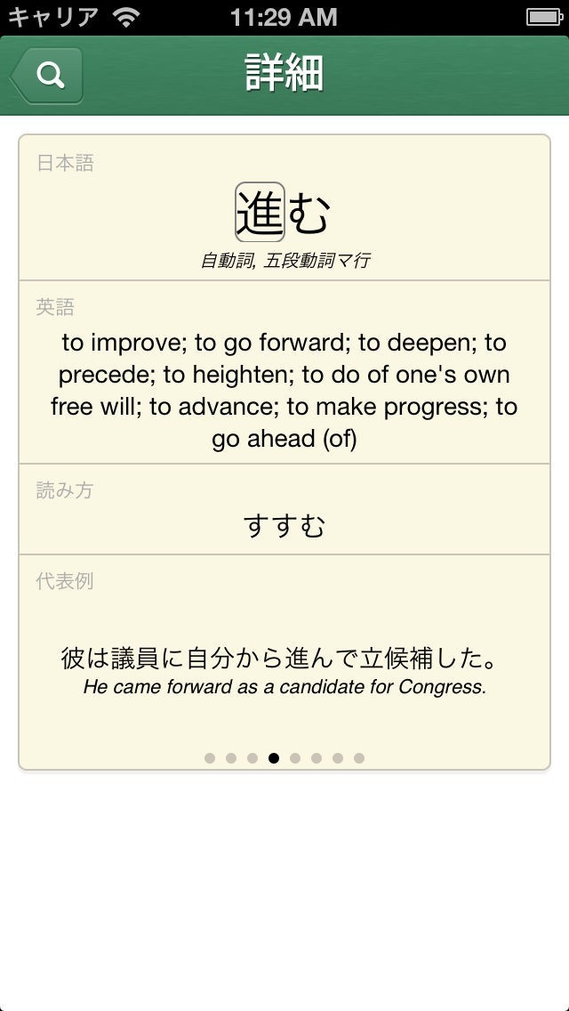 英語と日本語の両方を検索することができる辞書アプリです。14万件以上の文から検索することができ、バイリンガルによるチェック済みなので英語の勉強に使えます。漢字の書き順をアニメーションで表示したり、漢字の読み方をローマ字で表記したりする機能もあるので日本語の勉強にもなります。 英語検索では例文が豊富で同じ意味の英語の文章も表示してくれるなど、普通の辞書アプリよりも使いやすくなっています。インターネットに接続しなくても使えるのでどこでも使えて便利です。