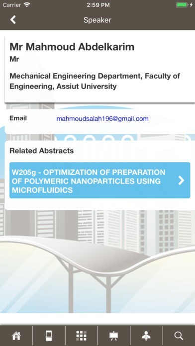 会議の主催社情報、会議内容、登壇者情報、会議の開催場所を示すマップなど、行われる研究報告会議に関するあらゆる情報をこれ1つで確認することができるようになっています。
