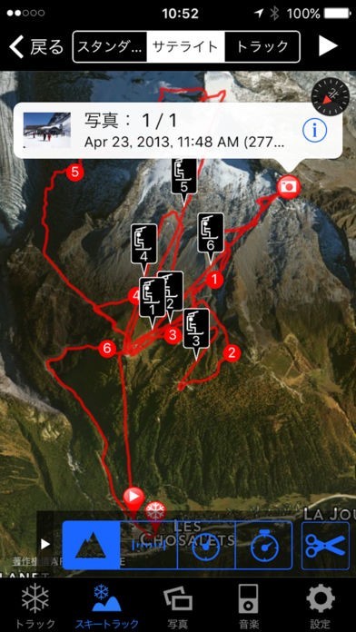 標高や滑走回数、滑走距離の記録写真をまとめる機能などでスキーをより楽しめます。