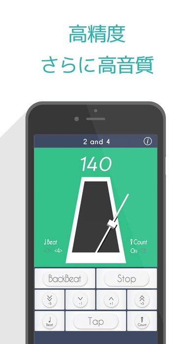 "2 and 4: Free Metronome"は、メトロノームでリズムや拍子を刻みながらも、自分の感覚的なリズムも養う事が可能なメトロノームアプリとなっています。本アプリの特徴的なところはバックビートにあります。4/4拍子では、1・2・3・4とリズムを刻みますが、2/4拍子では、2拍と4拍のみのリズムが刻まれます。その為、1拍と3拍は自分でリズムを感じ取る必要があり、自然とリズム感を養えると言った仕様が魅力のアプリです。楽器演奏に欠かせないリズム感やテンポを身につけるのに最適なメトロノームで、かさばるメトロノームを持ち運ぶ手間なく、いつでも手軽に利用できる魅力のアプリです。