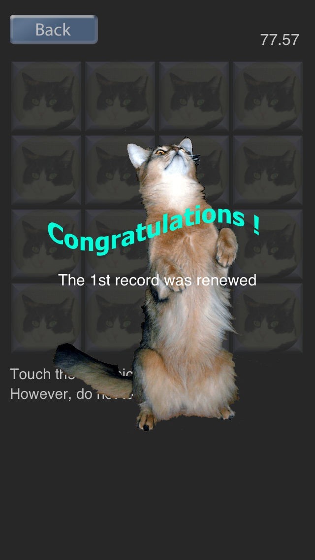 表示されるネコをタッチで消していき、全てのネコを消去した時間を競う無料ゲーム