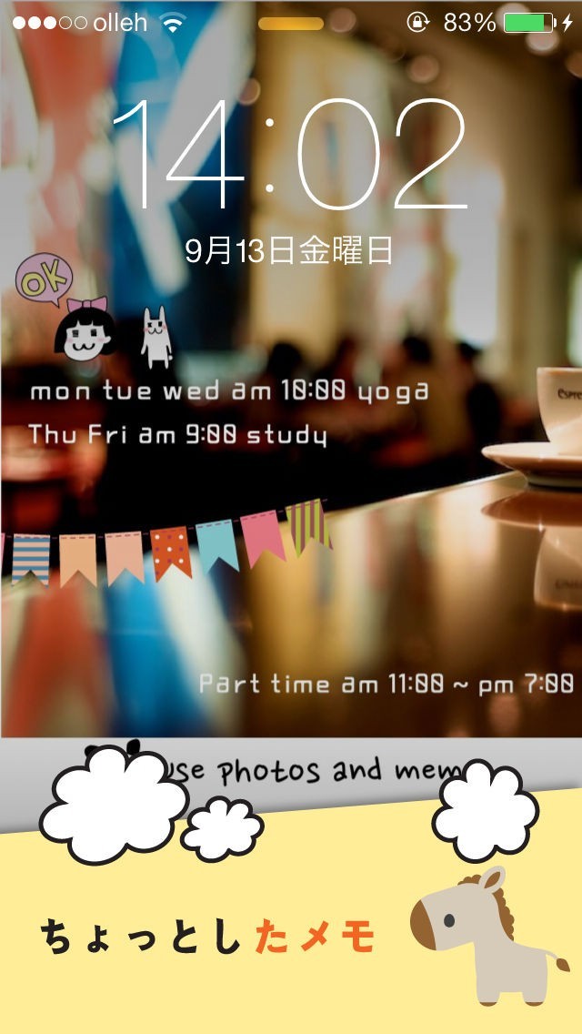 「My Wallpaper Calendar (カレンダー・スケジュール・メモを持って作る背景画像)」では、月のスケジュールを入力すると1枚の画像になるアプリです。ロック画面でスケジュールが確認可能なので、忙しい主婦の方もわざわざロックを解除してアプリを開く手間も掛かりません。「豊富なスタンプ」機能により、スタンプを予定表に組み込むことで可愛らしく仕上げられるので、シンプルなスケジュール表だったのが自分好みに返信します。更に、壁の色もカスタマイズ出来るので世界に一つだけのスケジュール表が作成出来てしまいます。月の予定をまとめて一度入力するので時間の節約にもなります。