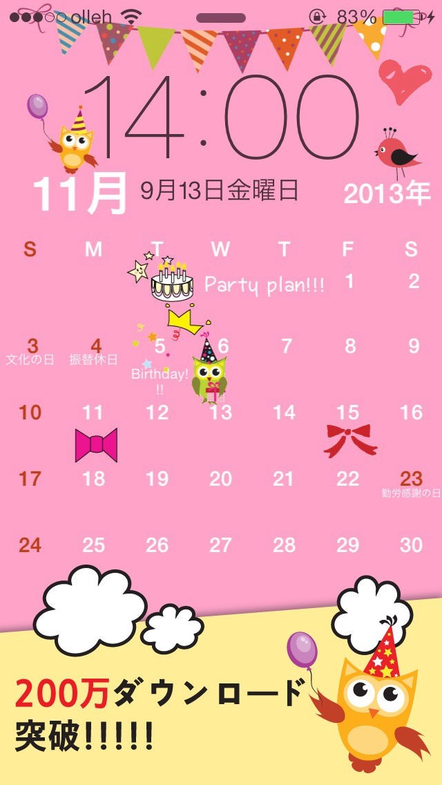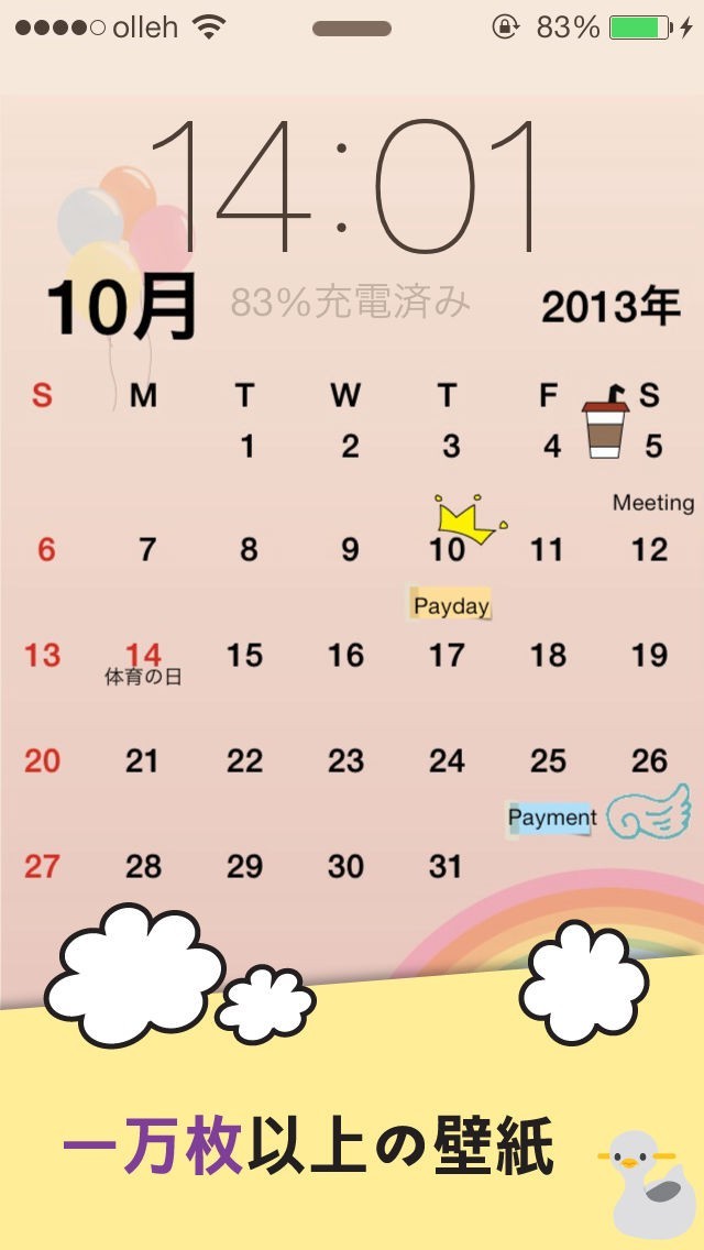 自分だけのかわいいカレンダーを作ってスケジュールを管理することができるアプリです。壁紙にできる画像が1万枚以上用意されていて、文字のフォントや色も変えることができるので自分好みのカレンダーにできます。ステッカーも300種類あるのでたくさん付け加えればかわいいカレンダーになります。 作ったカレンダーは画像データとして保存されるので、ロック画面にしておけばいちいちロックを解除しなくても手軽にスケジュールを確認することができます。
