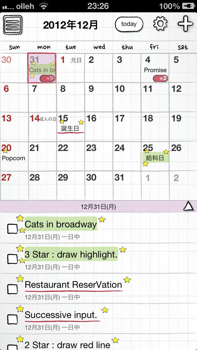 重要な事にハイライトを塗ったり、星模様をつけることもできます。