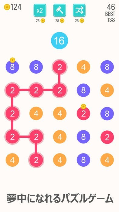 できるだけたくさんの同じ数字の点をつないでラインを作る明快なルールが気軽にできて楽しいです。