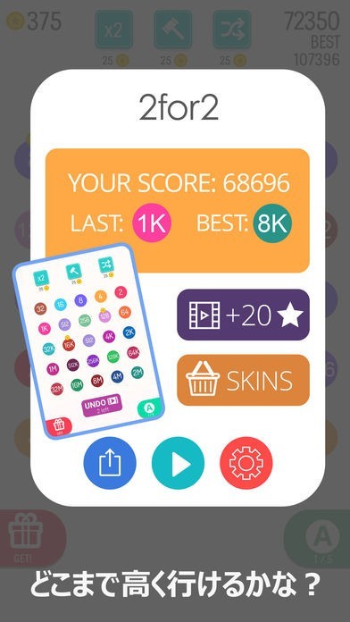 ピンチを切り抜けるための強力なアイテムも用意されているので活用しましょう。数字を一つ選んで2倍の数に変えたり、どうしても消せない数字を単独で消滅させたり、同じ数字が連続するように全体を並べ替えたりなどの機能を持つアイテムをゲーム中で手に入るコインで買って使うことができます。また回数限定で直前のプレイを取り消すことができるアンドゥも役に立つ機能です。