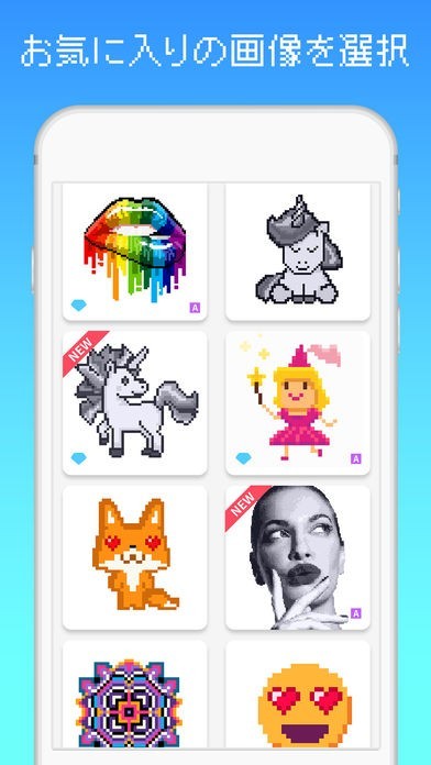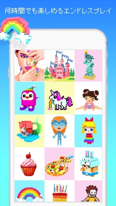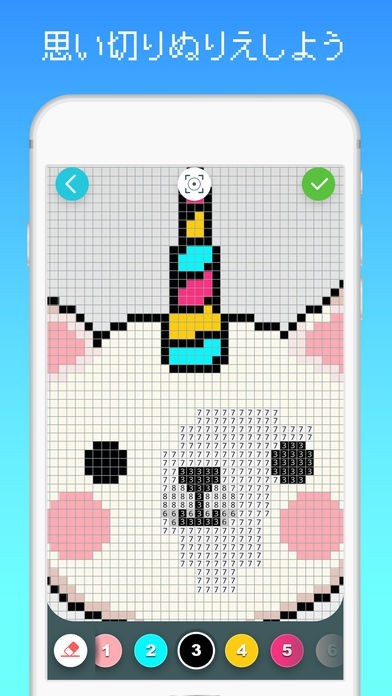 ピクセルアートのぬりえを楽しもう!数字の虹色