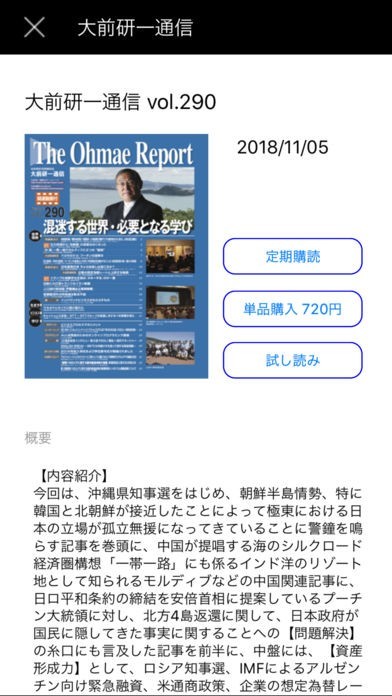 このアプリは、「大前研一通信」のNewsstandの定期購読アプリです。