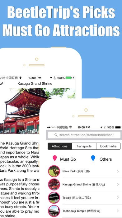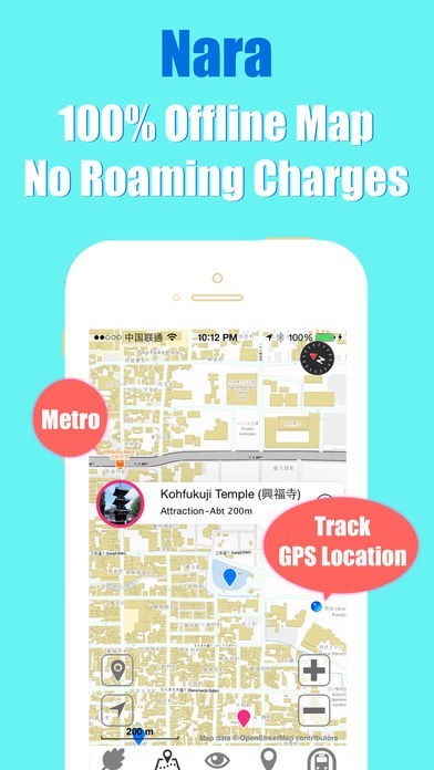 App Storeより引用BeetleTrip 奈良トラベルガイド&オフラインシティマップ《プレミアム》は、海を越えた究極の旅の友です。リアルタイムで奈良でのあなたのGPS位置をオフラインで知らせ、追跡します。特筆すべき機能なのが、3G/4GやWi-Fiなどといった、ネットワークがまったく必要ないこと。100%オフラインで使用できます。拡張式のリアルな道順ガイド、オフライン・シティマップ、交通情報検索、絶対見るべき観光アトラクションなど、旅行の計画に必要な全ての情報をこのアプリがご提供。海外旅行中のローミング料金を節約します。