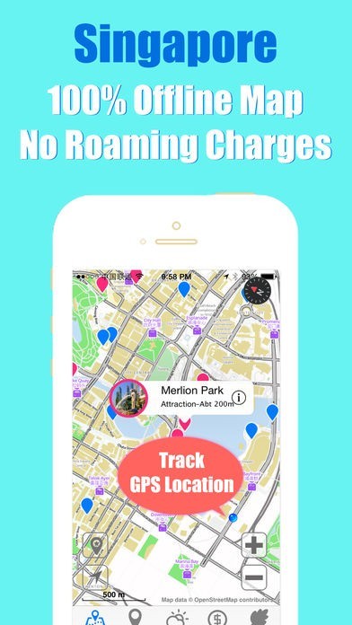 App Storeより引用Singapore Offline Map is your ultimate oversea travel buddy. Offline GPS locates and tracks your position in Singapore at real time. The most important feature is: NO 3G/4G, NO Wifi and absolutely NO Network Data needed. 100% offline. This app provides you offline city map with all the metro/train stations, metro route search, must-go tourist attractions (red pin) plus other hundreds of POI -Point of Interests (blue pins). Save you expensive roaming charges while you are traveling abroad.
