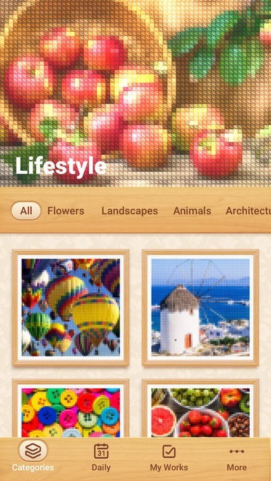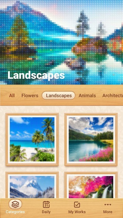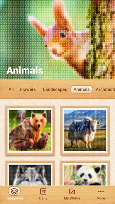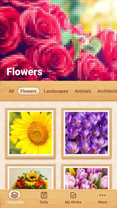· Enjoy numerous themed pictures: animals, florals, landscapes and many others.