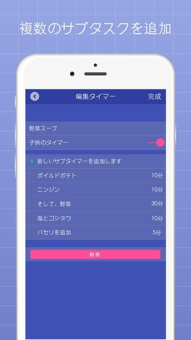 App Storeより引用「タスクタイマー」は、あなたが簡単に楽しい時間感謝のタイマーアプリを開発する計画を策定することができますタスクです。