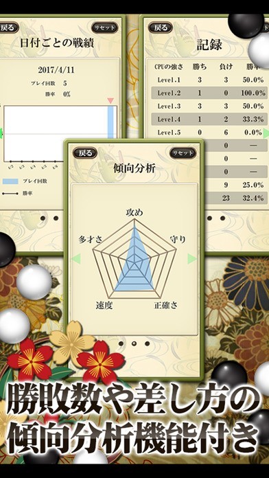 「待った」機能、戦績の記録、先手後手ランダム設定 など
