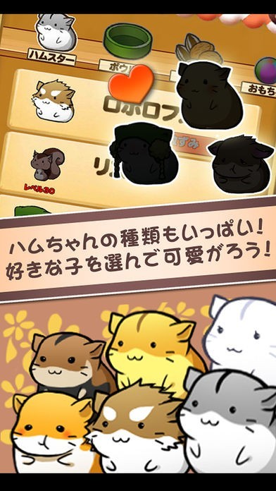 撫でるもよし、エサをあげるもよし、回し車に乗せるもよし、ただ眺めてるもよし。育成方法は様々!毎日育成してハムちゃんの色んな表情を探してみましょう。