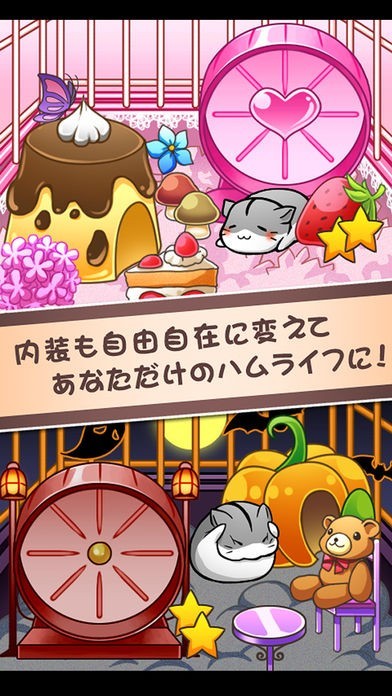 どんどん自分好みにカスタマイズして、あなただけのハムスターライフ・かわいいハムちゃんを育成しましょう!!