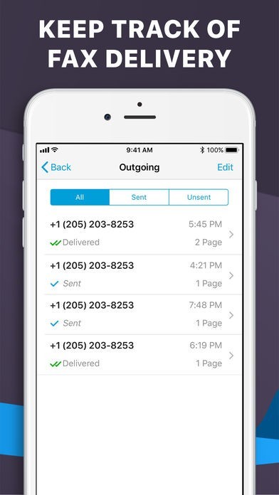 「iFax: Send fax from iPhone」は、スマートフォンでファックスを利用することができるアプリとなっていて、送信ステータスの通知も可能となっています。