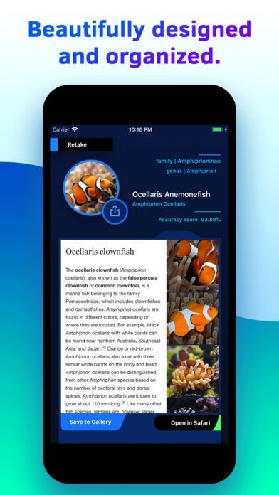 App Storeより引用The app then give you all the informations about the fish including scientific name, it's family and genus, and the images of the same species in our database. You can also read more information about it's habitat and characteristic on Wikipedia.