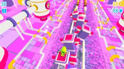 様々な仕掛けを掻い潜りながら駆け抜けるランニングゲームです。このゲームの特徴は自動でキャラが動く一般的なランニングゲームと異なり、プレイヤーがタップしている間だけ走るという今までとは少し異なったルールになっています。ジャンプのみ自動で行われるので、仕掛けの動きをよく読み、タイミングよく操作する必要があります。一瞬の判断が命取りになるので、迷う事なく操作することが攻略のコツになります。仕掛けの種類も豊富で、動く足場から当たったらひとたまりもないトゲトゲのハンマー、回転するバーなどワクワクする仕掛けが沢山あります。片手で簡単に操作できるので、空いた時間で手軽に遊ぶことができます。