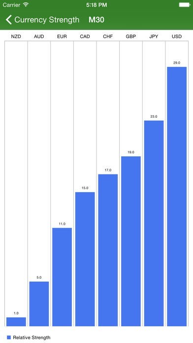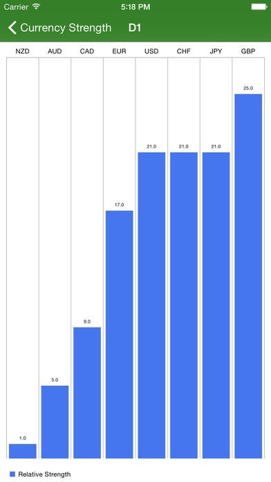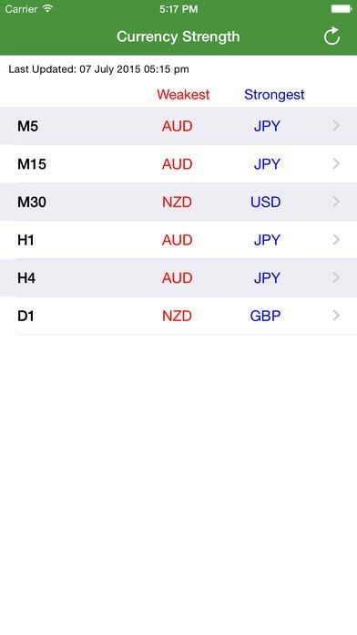 FX Currency Strength compares the strength of all the major currencies and lists them in accordance to their strength/weakness. No longer will you need to scan through all the charts to check on how each currency is doing against the other currencies.