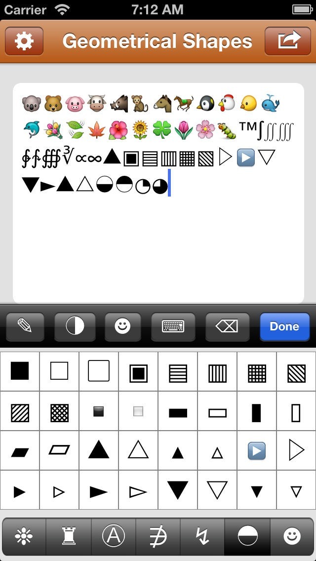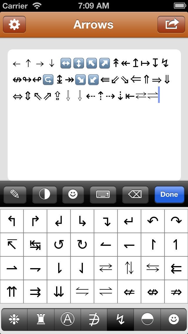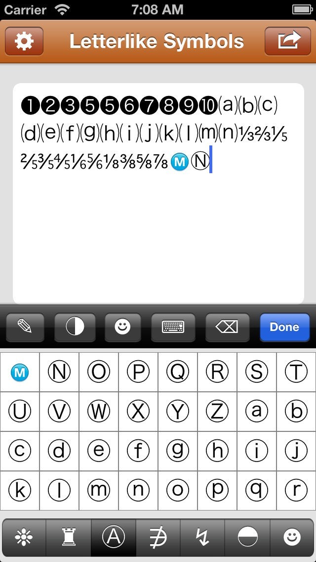 また、このアプリは、余分なシンボルのキーボードを提供し、それが含まれています: