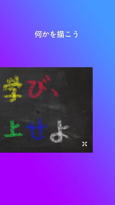 学校にあるような黒板を再現したツールとなります。スワイプで自由にチョークの線を描く事ができるので、絵やテキストを好きなように書くことが可能です。またチョークの太さを変更することもできます。