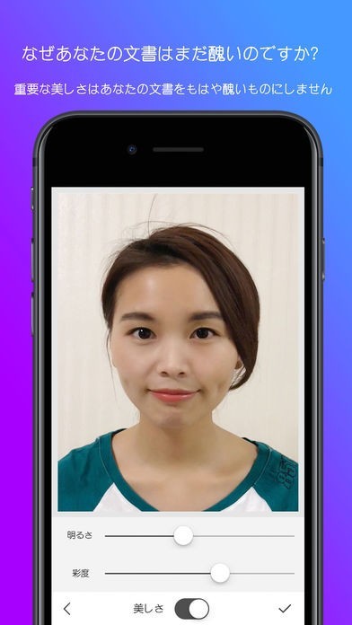 iPhoneのカメラで自分を撮影した写真を証明写真にできるアプリです。無料で作成可能で、撮影した写真は自動的に綺麗に補正してくれるので高画質の証明写真を印刷することができます。