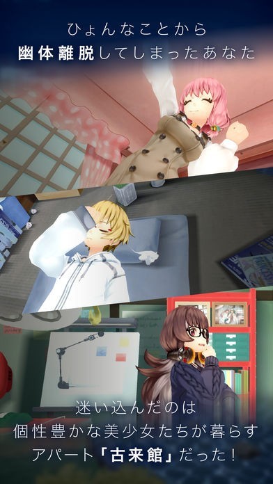 とあることがきっかけて幽体離脱してしまった主人公。迷い込んだのは、個性豊かな女の子たちがいっぱいのアパート・古来館だった!まるで自分がその場に存在しているかのような感覚を、ぜひ体験してみてください。
