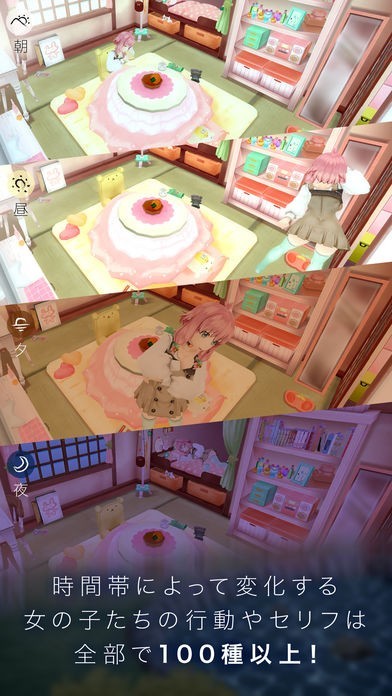 女の子たちの行動は時間帯によって様々に変化し、その種類は100以上。こんなことやあんなことなど、時と場所によっては女の子たちの意外な一面も覗けちゃうかもしれません。