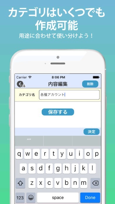 アプリを使ったり、サイトにログインする際に必要になるのが アカウントやメールアドレス、Passwordです。 「コピログ 〜 コピー/パスワード管理アプリ 〜」を使えば、手軽にまとめて管理することができます。 保存したいワードや文章を指定し、コピーします。その後アプリを起動させれば、もう保存が完了します。アプリ上でキーワードの登録も可能です。定型文や挨拶文、よく使う言葉を貼り付けたり、入力すれば自由に登録できます。簡単に操作ができ、タップするだけで進められるのがこのアプリの特徴です。一覧を自分で見やすくする機能もあり、アカウントやPassword、文章などを個別に分けたり、色を変えてカスタマイズしたりもできます。
