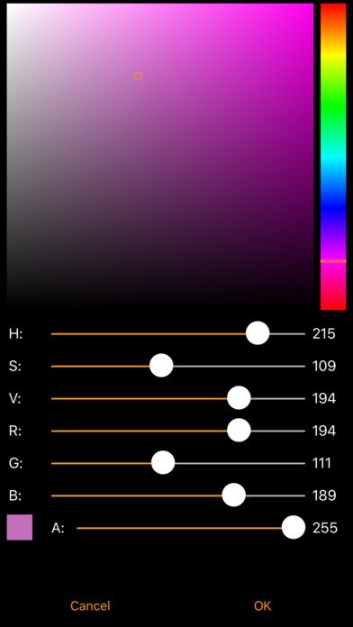 - Choose from a large colour palette or add your own custom colour with the colour picker. Your custom palette will be stored along with your project